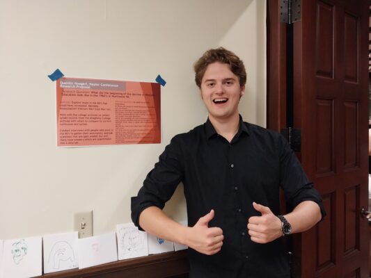 Quentin Hoegerl ’27 was selected to participate in the Naylor Workshop for Undergraduate Research in Writing Studies held at York College from September 26 to 28, where he considered ways in which to extend and refine his 2025 URSCA research project.