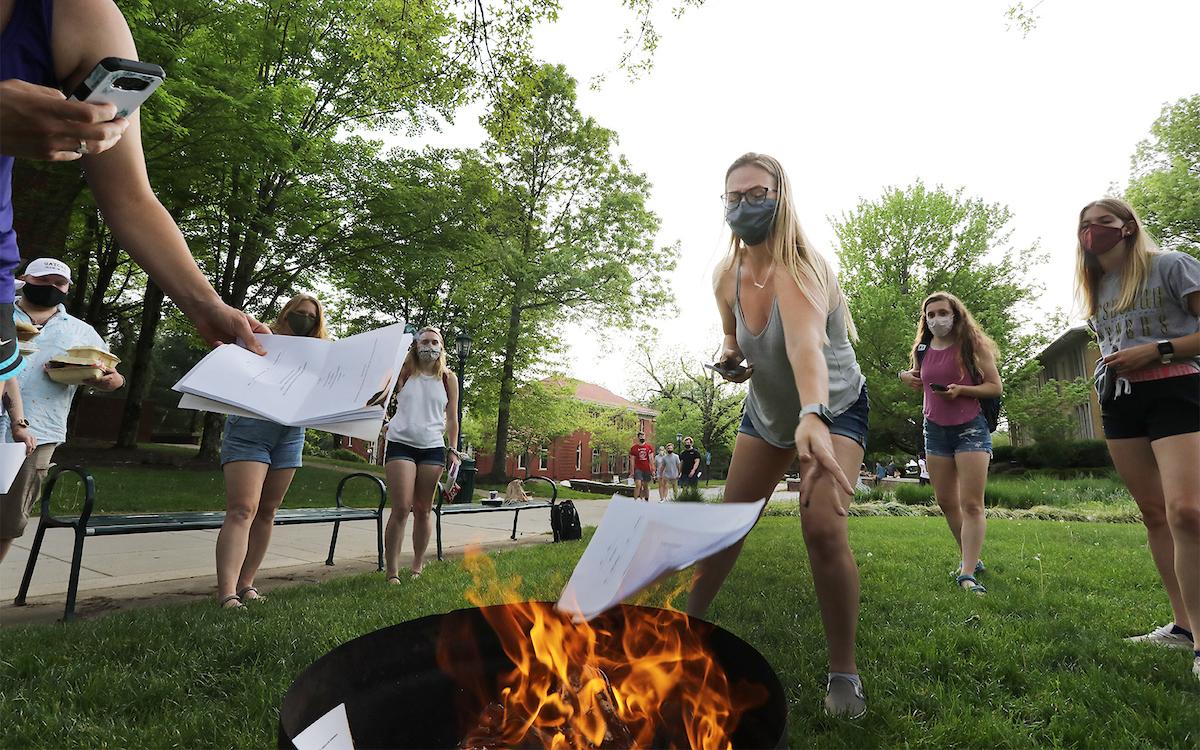 - The traditional “Burning of the Comps” during Senior Day festivities